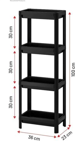 Merkloos Badkamerrek – 4 Etages – Keukenrek – Opbergrek – Staand Badkamerrek – Zwart – 100x36x23 CM