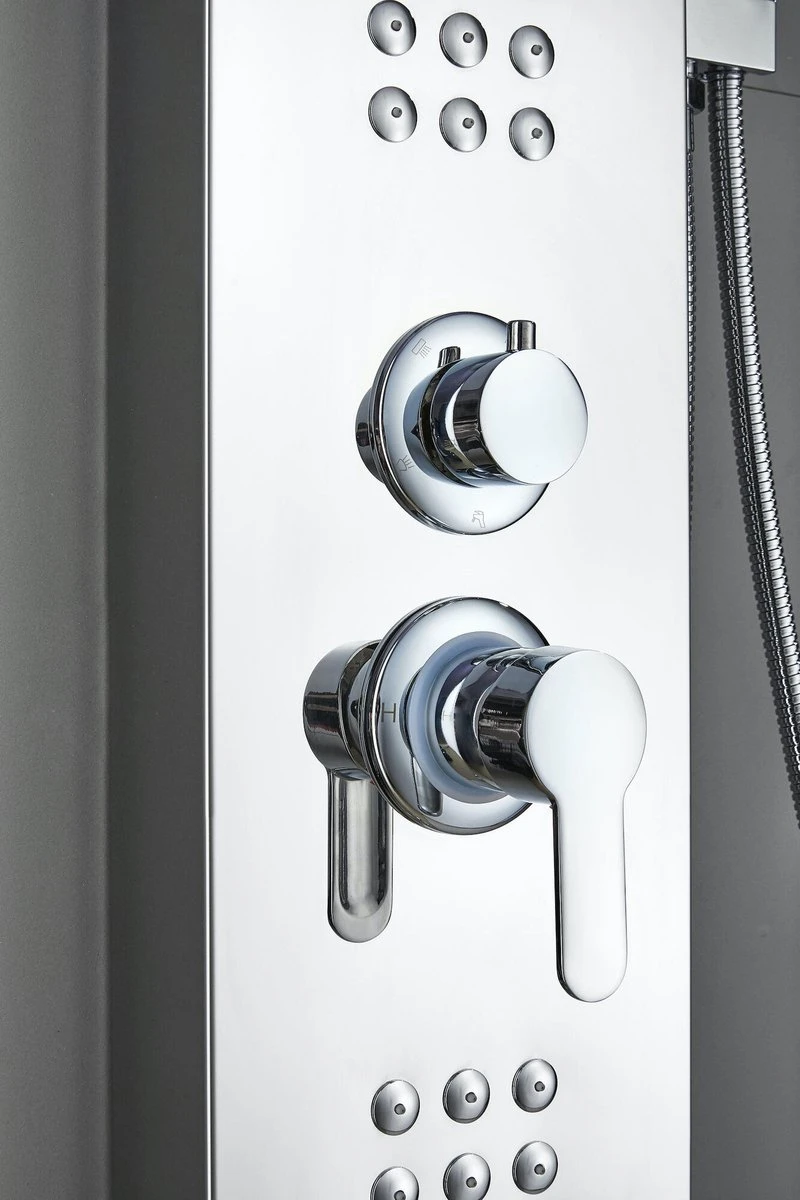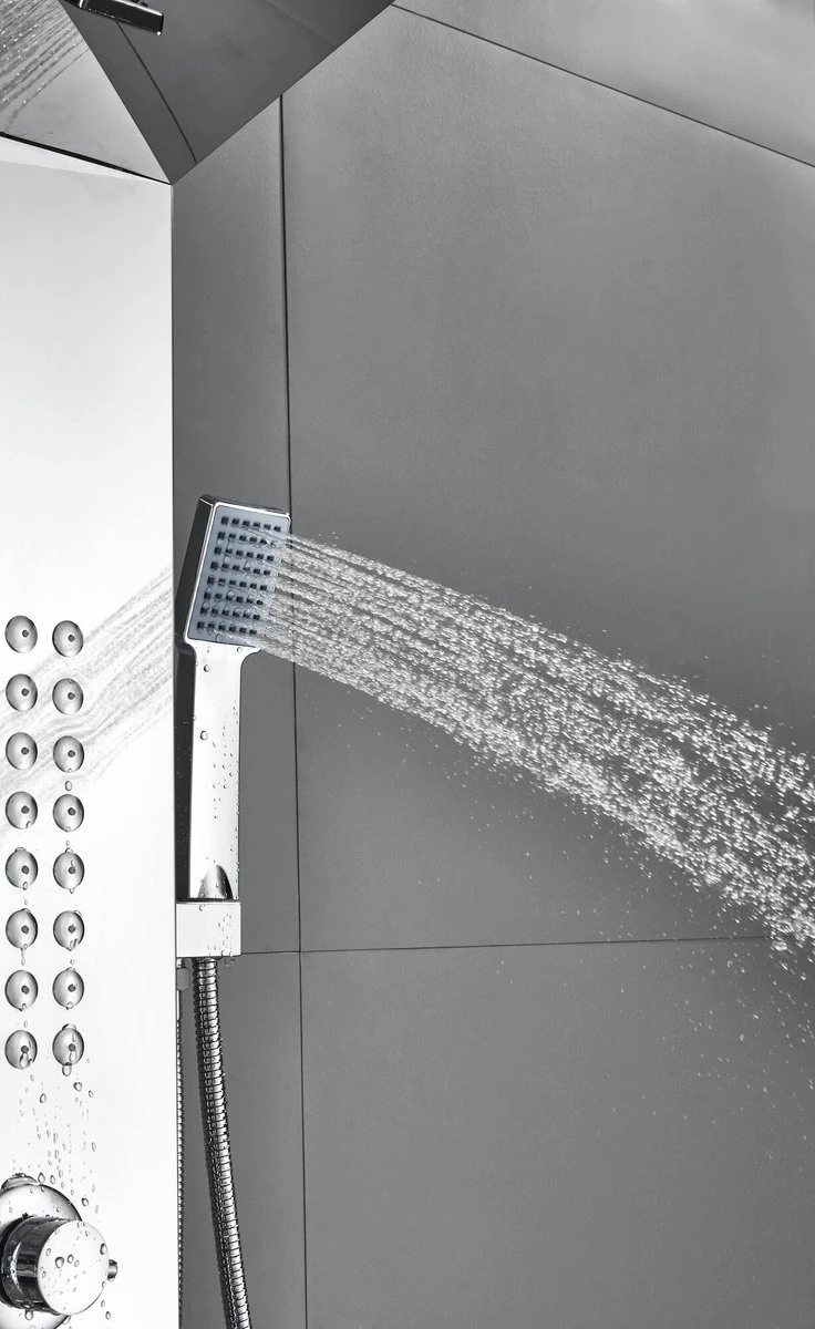 Het douchepaneel heeft vier verschillende waterstanden. Dit zijn de volgende standen: Water uit de hoofddouche, water uit de waterval functie, water uit de handdouche en water uit de twee massage units. Deze vier standen zijn met één knop te regelen, zodoende zijn maximaal twee standen tegelijkertijd te gebruiken.
