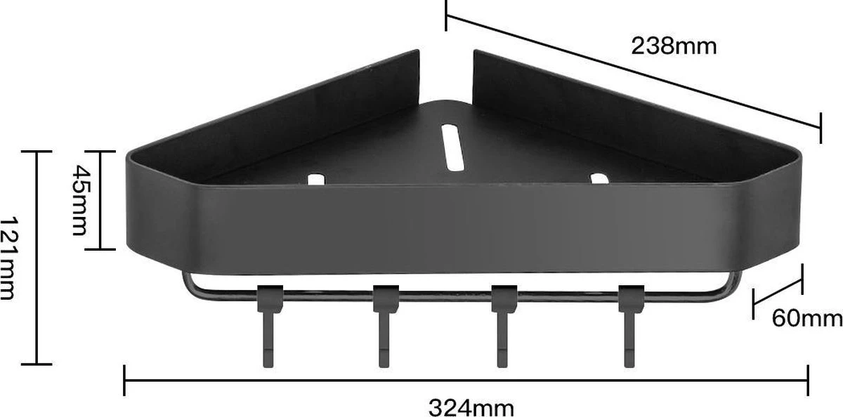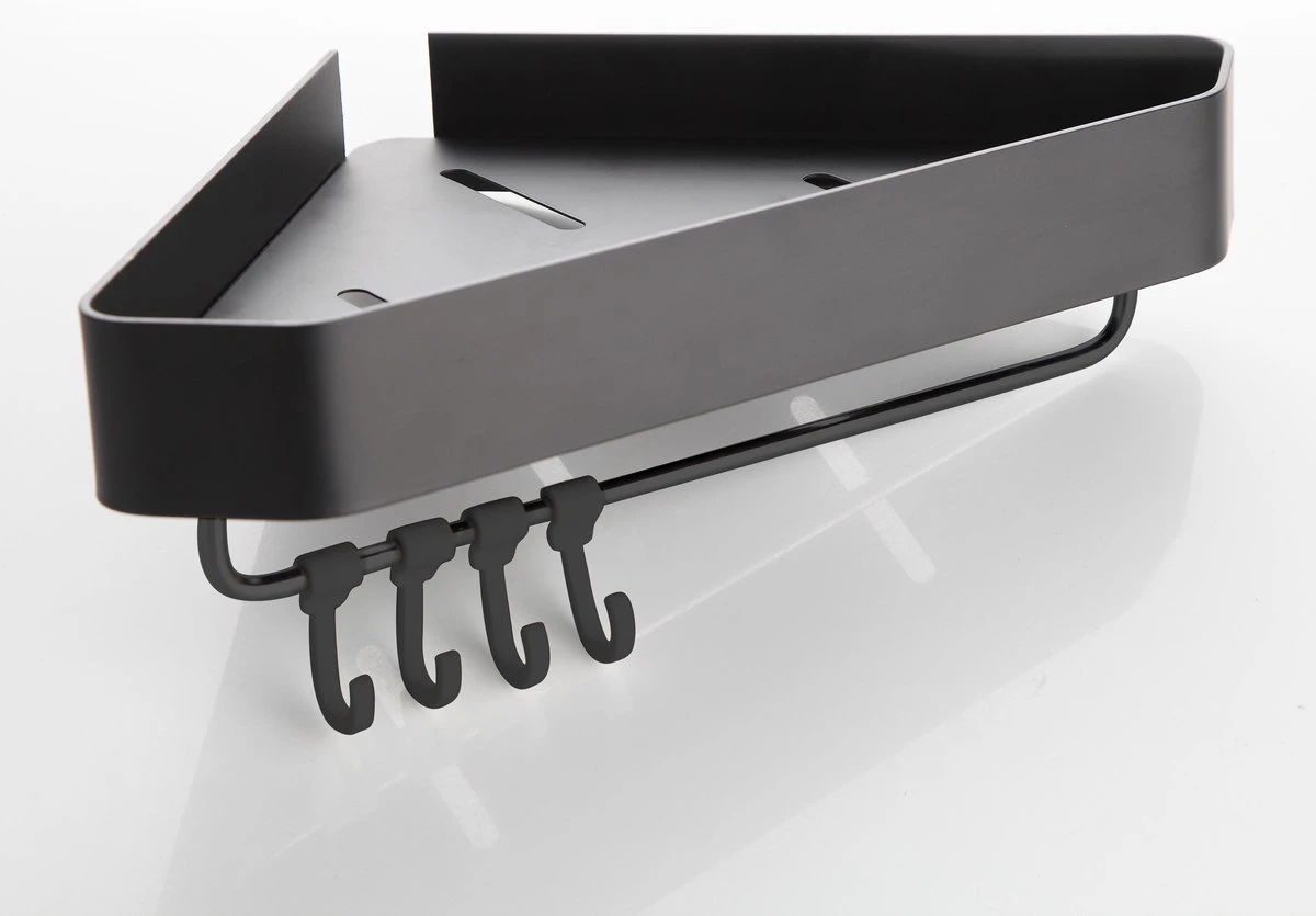 Zeg dus maar vaarwel tegen omgevallen shampooflessen. Het eerste voordeel van een doucherek is het dat het er een stuk opgeruimder uitziet. Een nette douche zorgt ook direct voor een nettere badkamer! Het ligt allemaal netjes en compact bij elkaar. Verder beschikt dit unieke doucherek over haakjes aan de onderkant van het rek. Hier kun je all je douchespons of borstels aan ophangen.