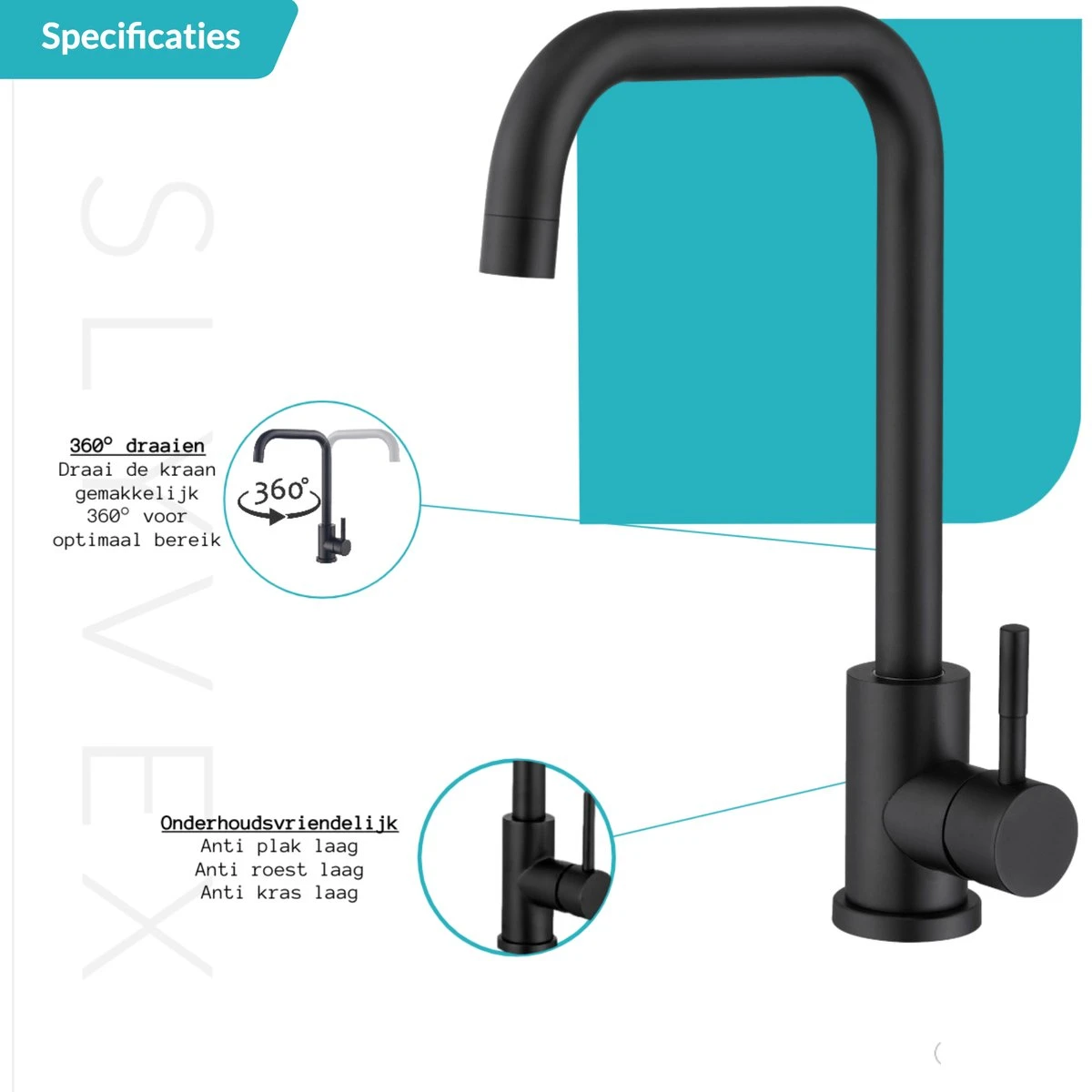 Croom Keukenkraan – Zwart – Wastafelkraan – Inclusief Aansluitmateriaal – Zwarte Kraan