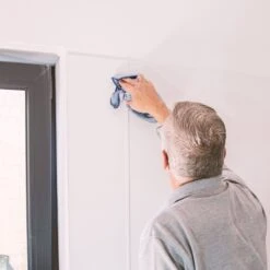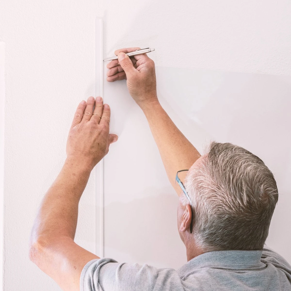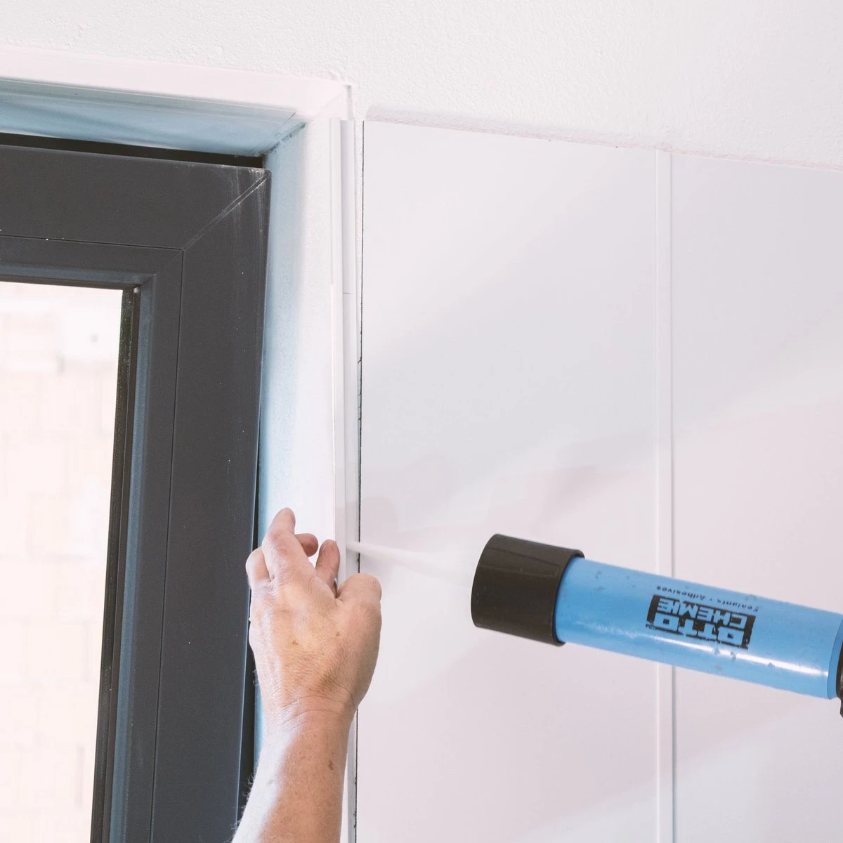 Speciaal voor gebruik in de badkamer en de douche, een waterdichte achterwand zonder voegen. Deze aluminium platen met een kunststof kern zijn slechts 3 mm van dikte waardoor er geen ruimte verlies optreed. Eenvoudig verlijmen over de bestaande wandtegel of een willekeurige ander vlak oppervlak. Voorbehandeling van de ondergrond, ontvetten en eventueel kimbanden aanbrengen. Montage is zeer eenvoudig, panelen op maat zagen met een decoupeerzaag of cirkelzaag, beschermfolie verwijderen en plaatselijk de meegeleverde dubbelzijdige aanbrengen, verlijmen met siliconelijm of middels volverlijming. De platen positioneren en goed aandrukken zodat de tape zich hecht aan de ondergrond. Randen afdichten met silicone en de volgende dag al in gebruik nemen of afmonteren van de douchecabine en andere sanitaire artikelen.
