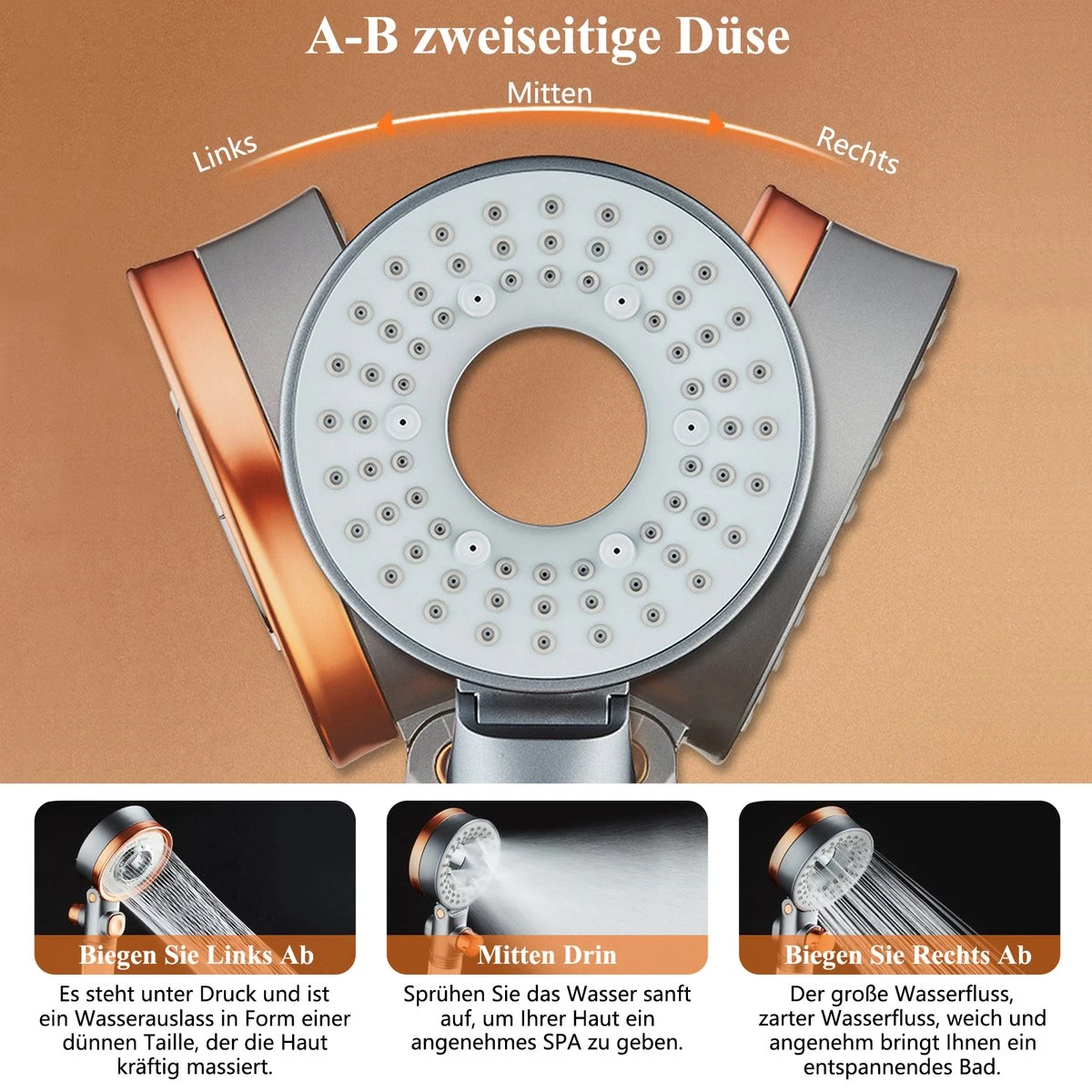 ✅【EXCLUSIEVE DOUCHE-ERVARING】 Innovatief ontwerp aan beide zijden van A-B, je kunt de douche naar links of rechts draaien om te schakelen tussen drie afvoermodi: Mountain Dew, SPA Jet en Full Body Rain-modus.