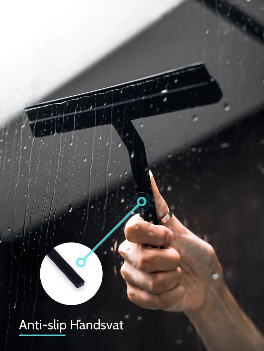 Douchewisser Zwart Met Magneetstrip – Badkamer Accessoires – Raamwisser – Trekker Douche – Silicone – 21cm X 20cm