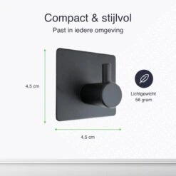 Handdoeken, theedoeken, vaatdoeken, als je ze gebruikt moeten ze droog en schoon zijn. Met deze handige ophanghaken, die je dankzij de sterke plakstrip makkelijk op een muur of kastje kunt plakken, heb je altijd een plekje om je doeken op te hangen. De zelfklevende haakjes zijn gemaakt van zwart RVS en eenvoudig te monteren. Je hoeft er namelijk niet voor te boren. Een must have voor je badkamer of keuken.