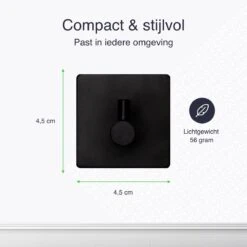 - Zelfklevend – Verwijder de 3M-plakstrip van de achterkant en plak de haak direct tegen de muur. Zo Bevestig je de haakjes zonder te boren in minder dan een minuut! De haakjes zijn even makkelijk weer te demonteren.