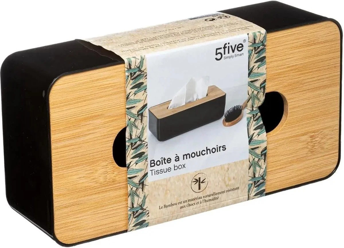 Five Tissuedoos – Zwart – Bamboe – 13 X 26 X 8.8 Cm
