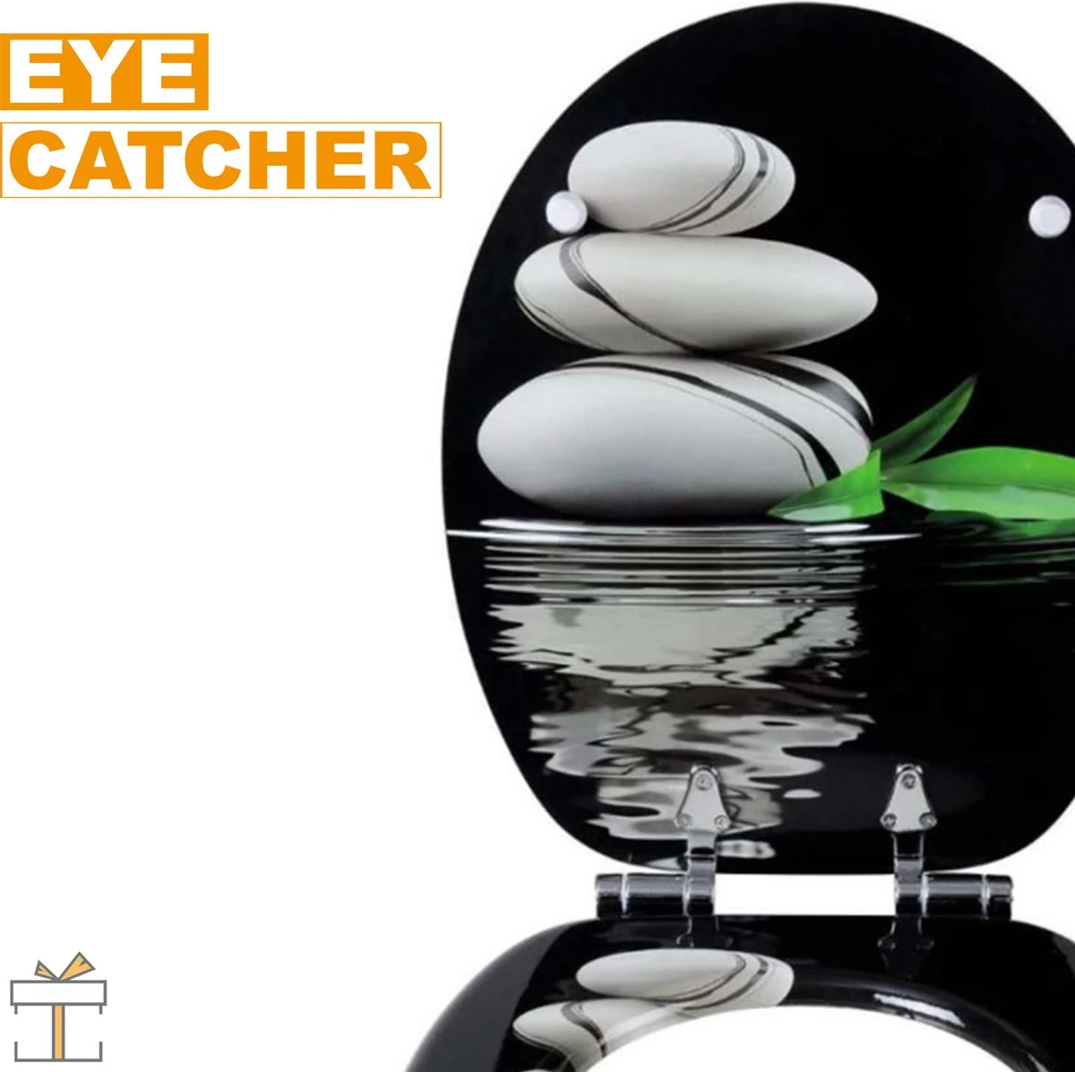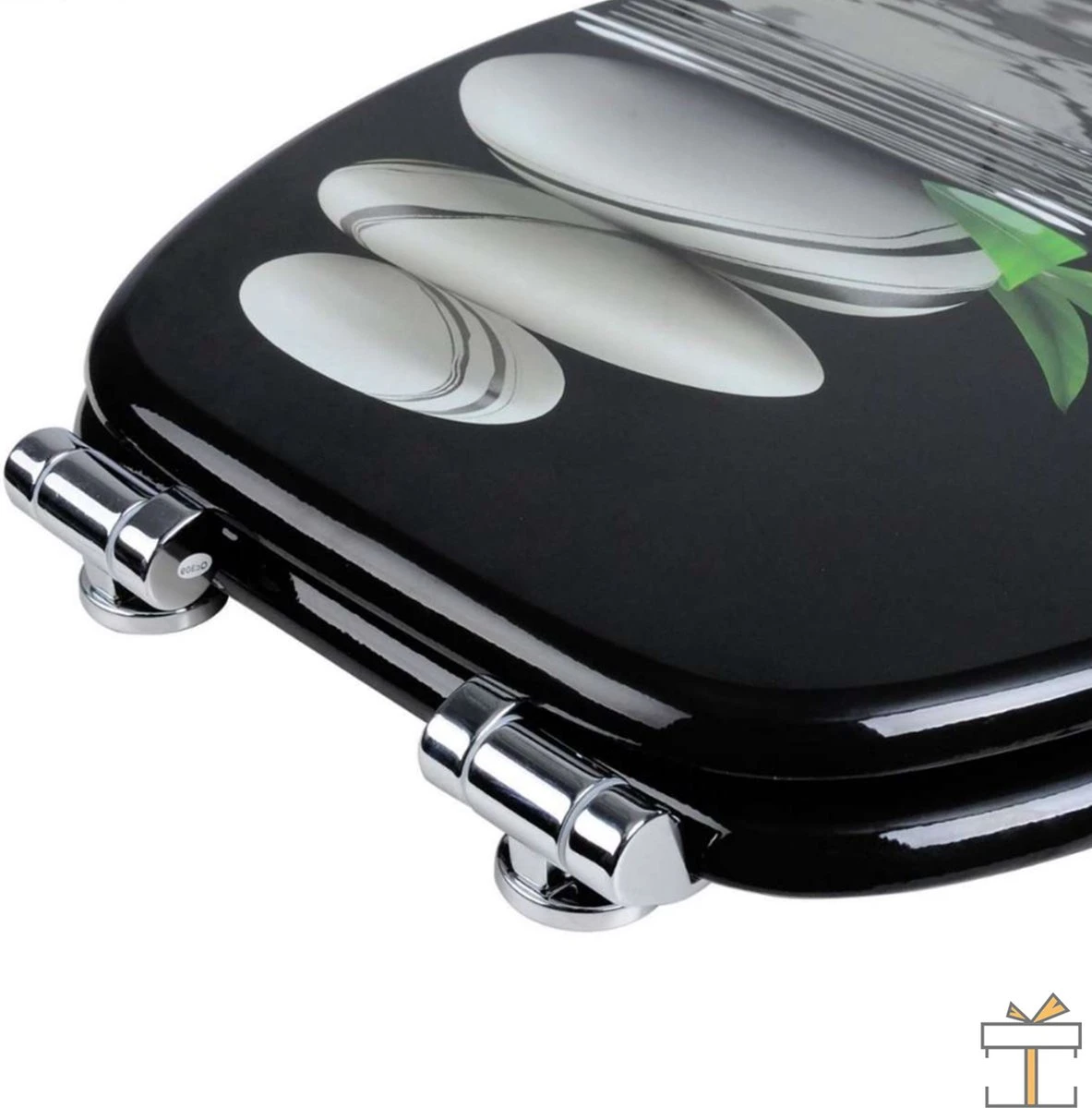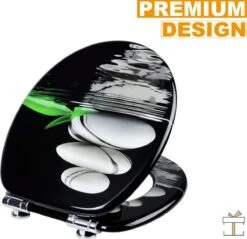 De unieke print op de bril voegt een kalme en ruimtelijke sfeer toe aan jouw toilet. Kortom, ideaal als vervanging voor een saaie witte bril! Daarnaast is het gemaakt van duroplast. Dit maakt de bril glad, antibacterieel en bovendien eenvoudig schoon te maken. De scharnieren zijn van roestvrij staal, dit is stevig en duurzaam.
