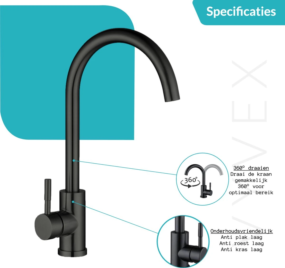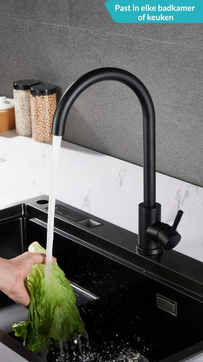 Op zoek naar een moderne kraan met alles erop en eraan, zonder honderden euro’s af hoeven te staan? Deze matte zwarte kraan levert design en kwaliteit voor een eerlijke prijs en geeft jouw keuken of badkamer net dat extra beetje stijl!