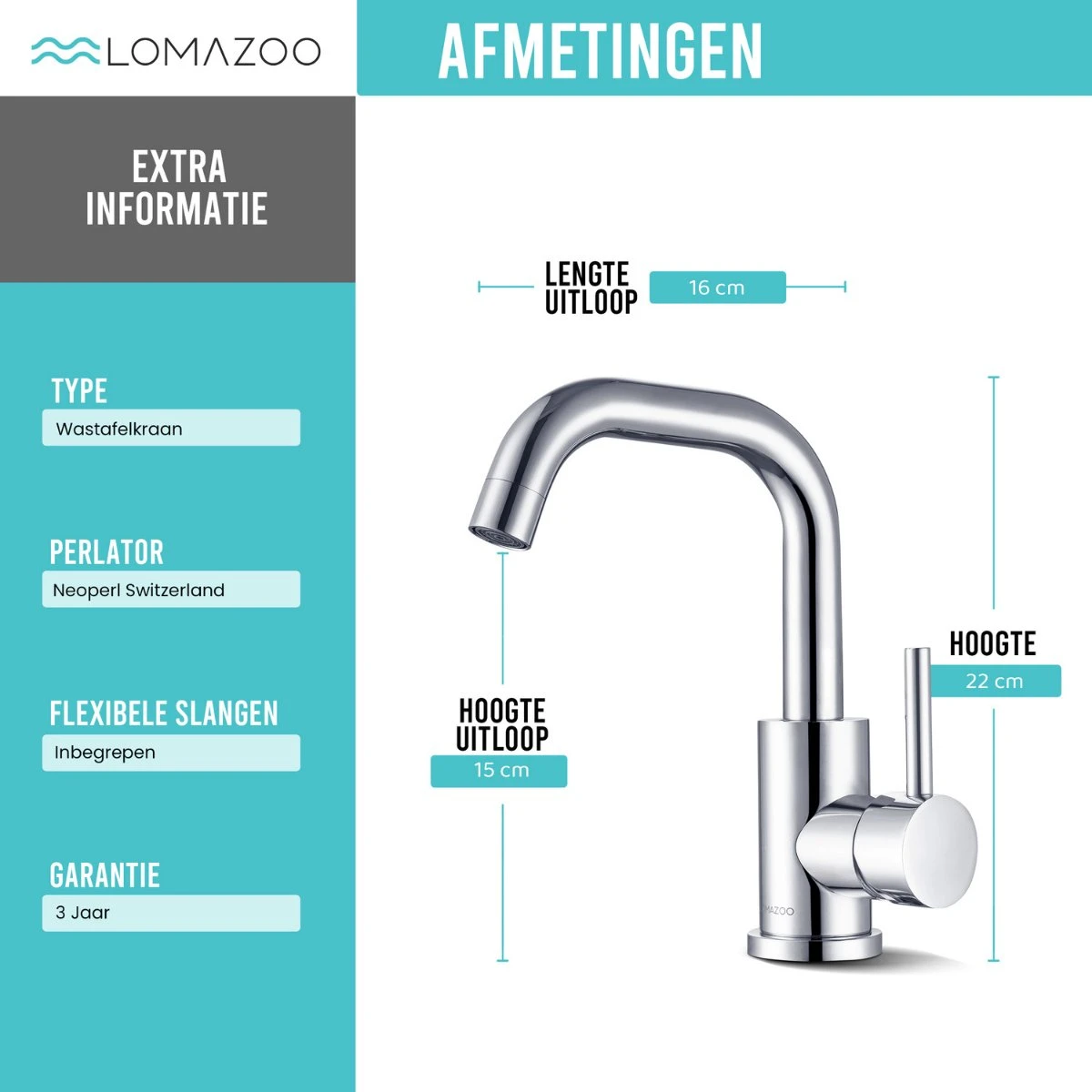 - Hoogte uitloop: 150 mm