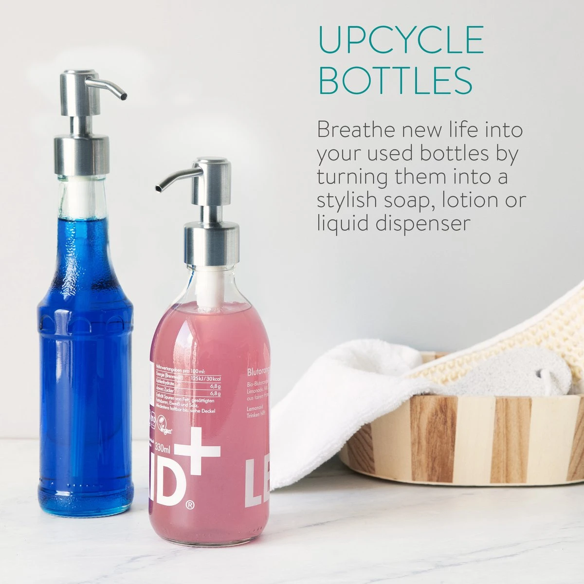 - OUDE FLESSEN HERGEBRUIKEN: Breng je gebruikte flessen opnieuw tot leven door ze in een stijlvolle zeep-, lotion- of vloeistofdispenser te veranderen met deze roestvrijstalen opschroefbare dispenserpomp.
