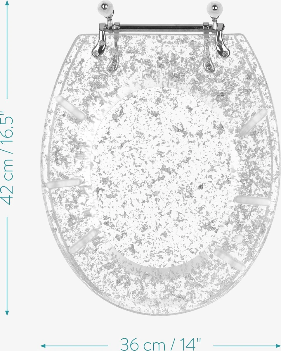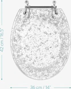 - UNIEK DESIGN: Het transparante materiaal versierd met glitters maakt deze toiletbril tot een waar kunststuk! Geef je toilet of badkamer een vleugje glamour met dit opvallende ontwerp.