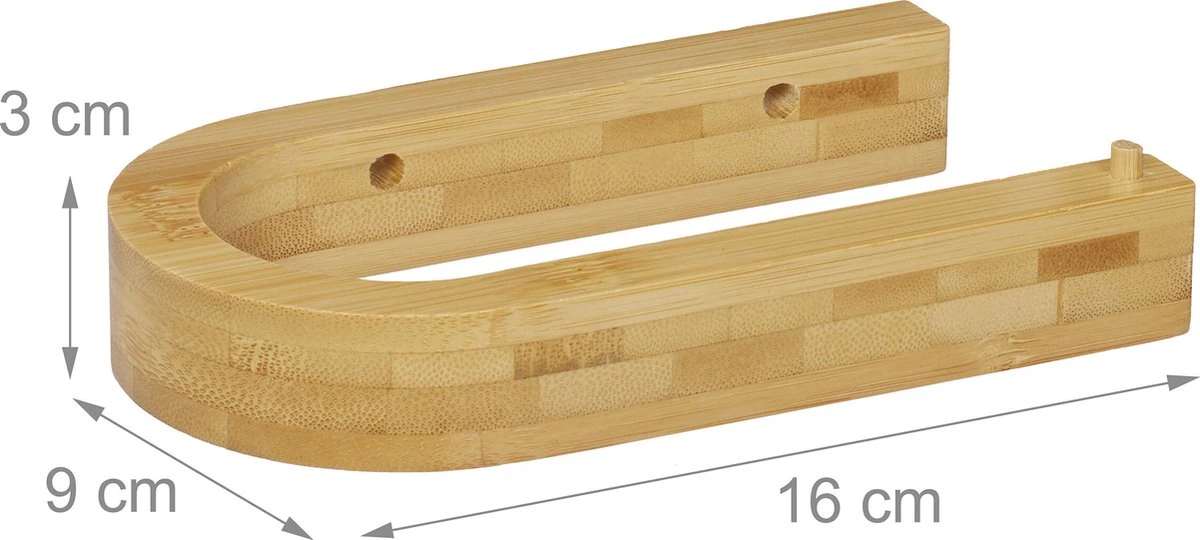 Met deze wc rolhouder voor aan de muur heb je het wc-papier steeds binnen handbereik en kun je het bovendien netjes afrollen. De toiletrolhouder is gemaakt van robuust bamboe en staat met zijn moderne design heel leuk in de badkamer of wc. Je kunt zelf bepalen of je de closetrolhouder met het meegeleverde bevestigingsmateriaal aan de wand wilt schroeven of dat je hem eraan plakt. De toiletrol kan makkelijk worden vervangen door hem over de stang van de wc-papier houder te schuiven.
