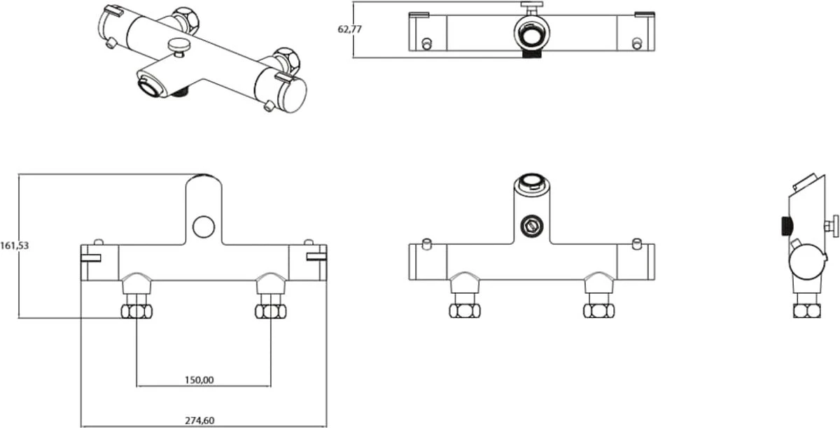 SCHÜTTE London Thermostatische Badkraan – Hartafstand 150 Mm – Chroom