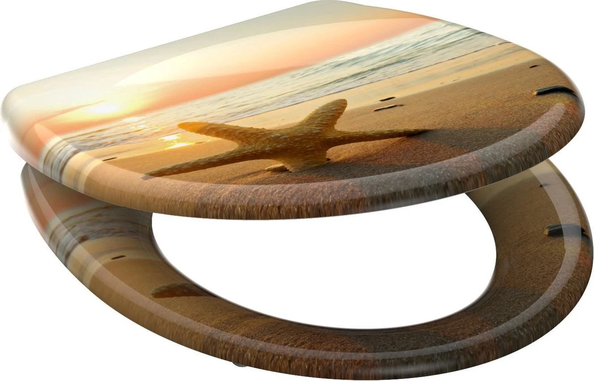 SCHÜTTE WC-Bril 82373 SEA STAR – Duroplast – Soft Close – Afklikbaar – RVS-Scharnieren – Decor – 3-zijdige Print