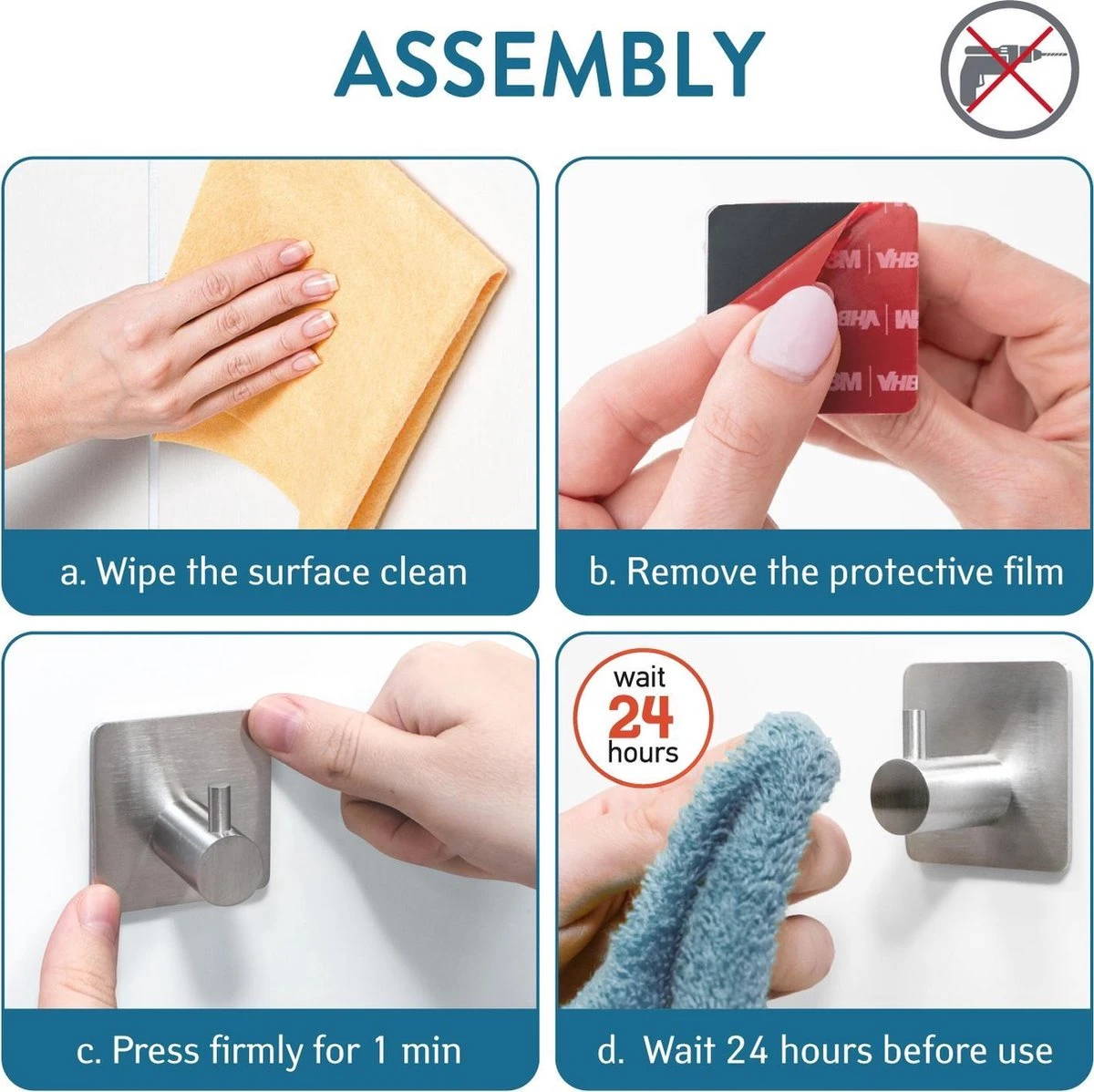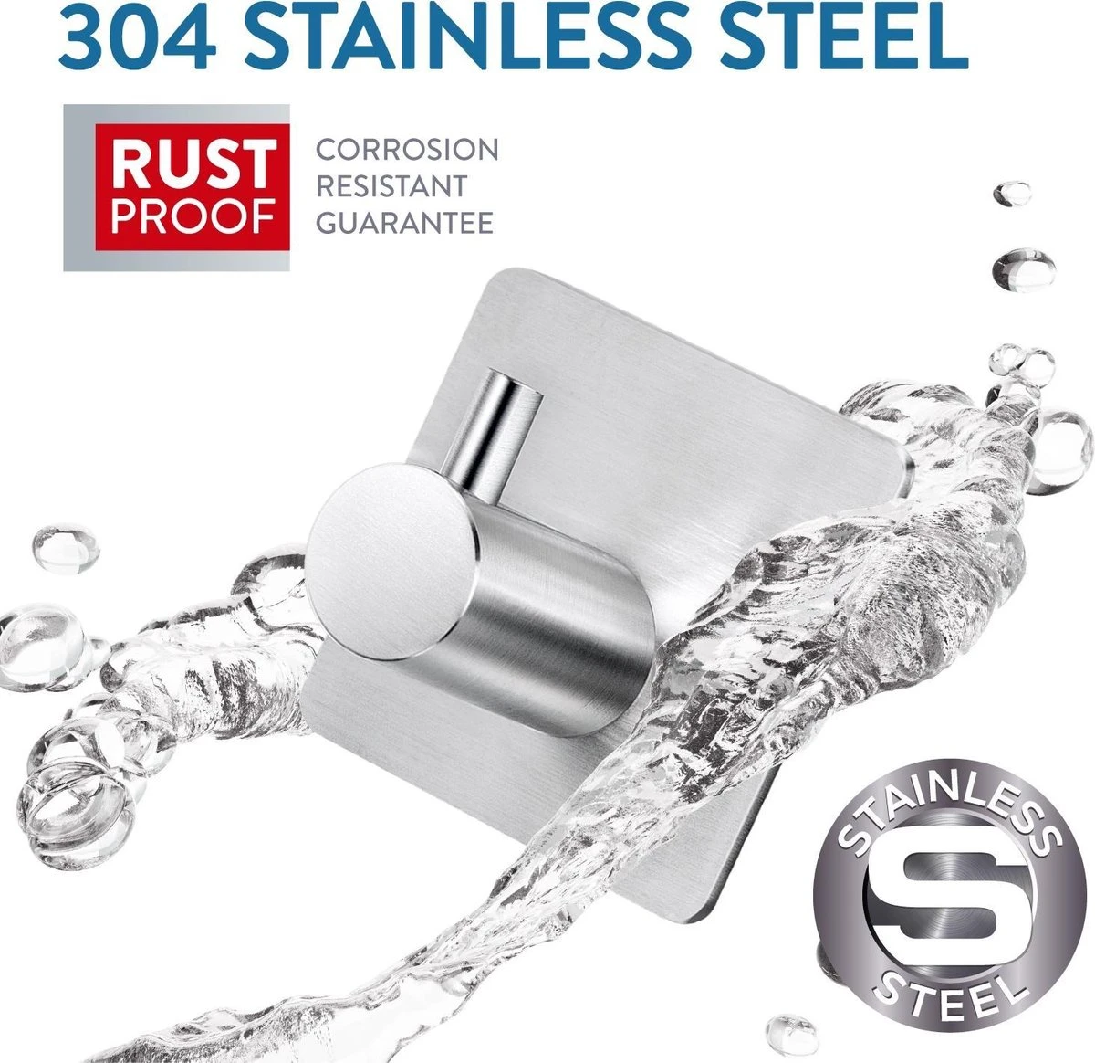 Set van 6 heavy duty zelfklevende ophanghaakjes. Deze haakjes zijn te bevestigen op iedere vlakke ondergrond en zijn voorzien van een supersterke plakstrip met een draagvermogen tot liefst 8kg. Ideaal voor het ophangen van handdoeken, kleding, jassen, sleutels, keukengereietc. Omdat de haken vervaardigd zijn uit robuust roestvrij staal kunnen ze ook gebruikt worden in ruimtes met een hoge luchtvochtigheid zoals de badkamer.