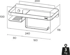 Je zit in één keer goed met deze unieke Tiger Caddy toiletrolhouder met planchet. Deze alles-in-1 toiletoplossing biedt ruimte voor geurstokjes, je mobiele telefoon, vochtig toiletpapier of zelfs een opbergdoosje voor hygiëne producten voor dames. Hij is de Houdini onder de badkameraccessoires, maar met de nieuwe Caddy is een opgeruimde badkamer geen illusie. Breng ook de elegante urban vibe naar jouw badkamer met deze variant in zwart.