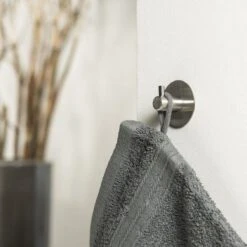 De Tiger haak Rhino is uitgevoerd in geborsteld RVS. De zelfklevende haak is eenvoudig aan te brengen op harde, stevige ondergronden in bijvoorbeeld de badkamer of de keuken.