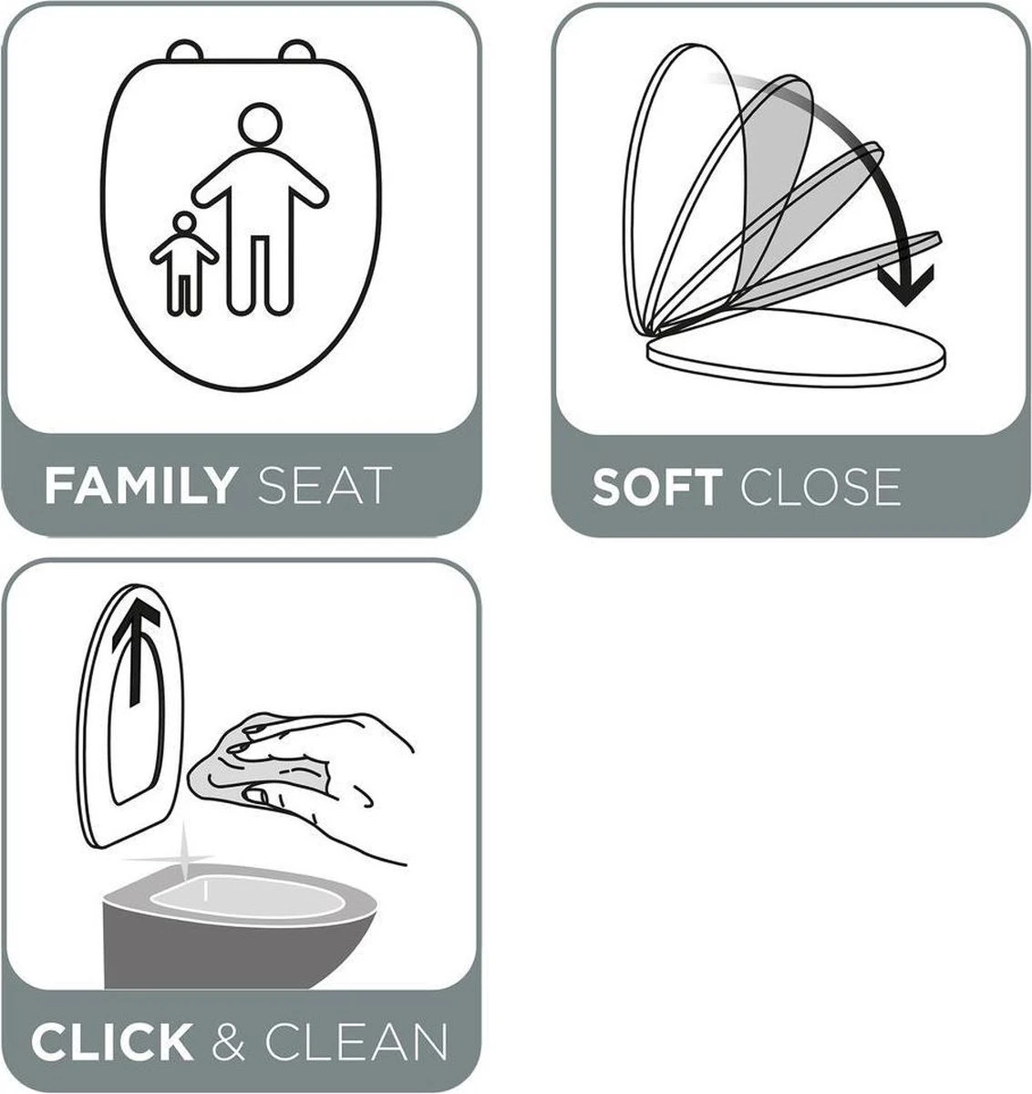 • Softclose sluiting: door de speciale scharnieren valt de toiletbril fluisterzacht neer. Wel zo rustig en veilig voor kleine vingertjes. De dempers voorkomen schade aan het keramiek van de toiletpot
