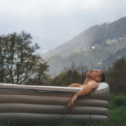 Het opblaasbad is ontworpen om comfortabel te zijn. Door de lucht-gevulde zijkanten is het bad zachter dan een standaard bad. De bodem bevat een yogamatje waardoor je op een zachte ondergrond ligt. Dat is nog eens comfortabel tot rust komen!