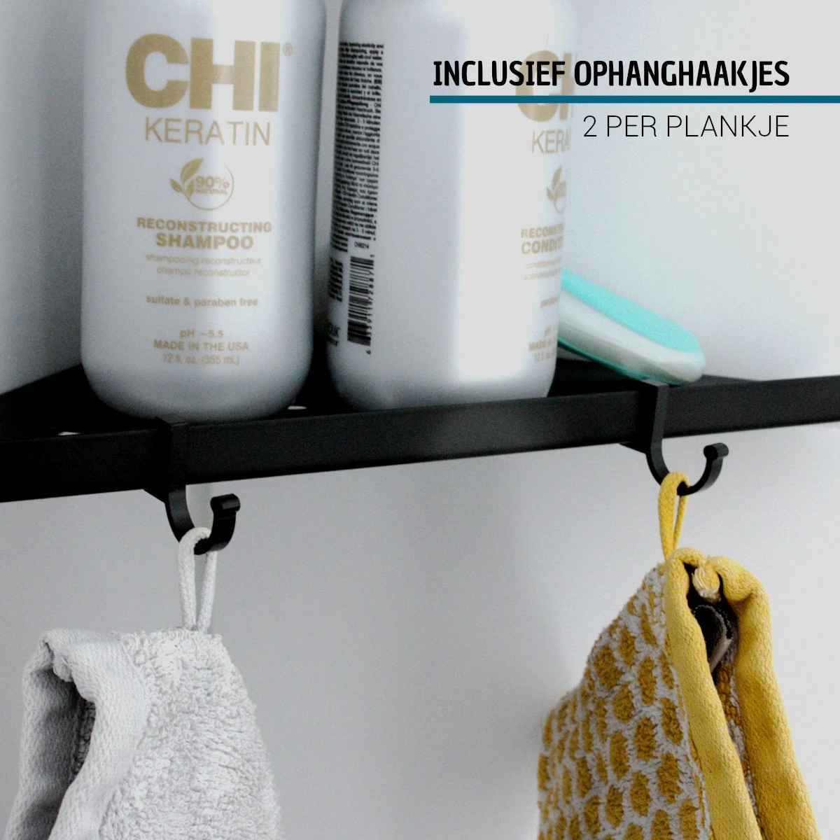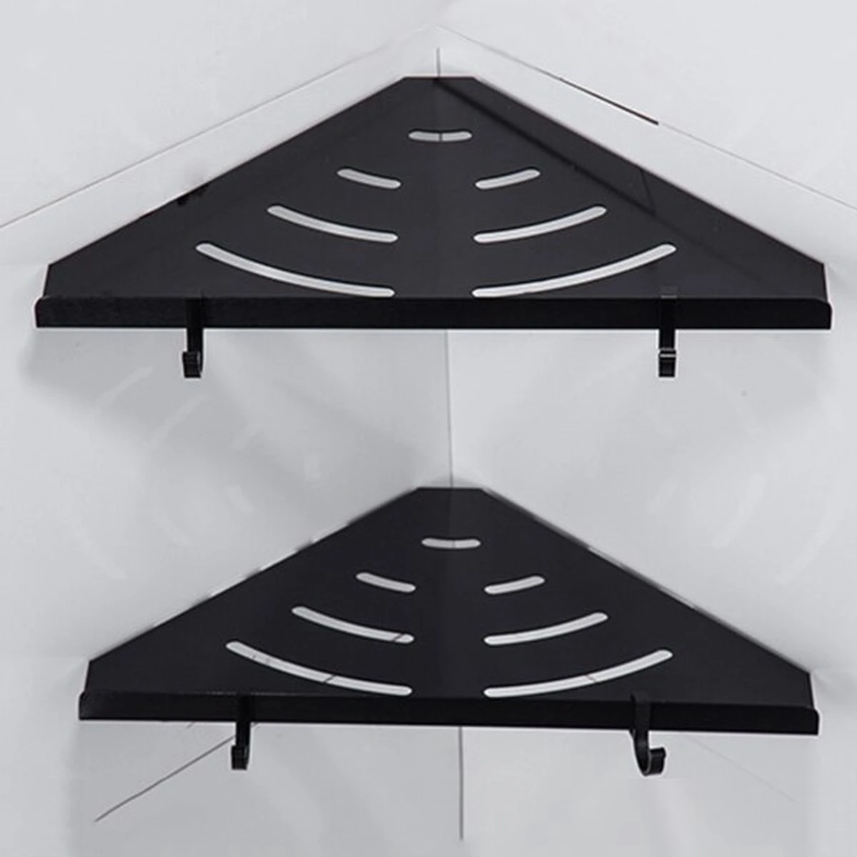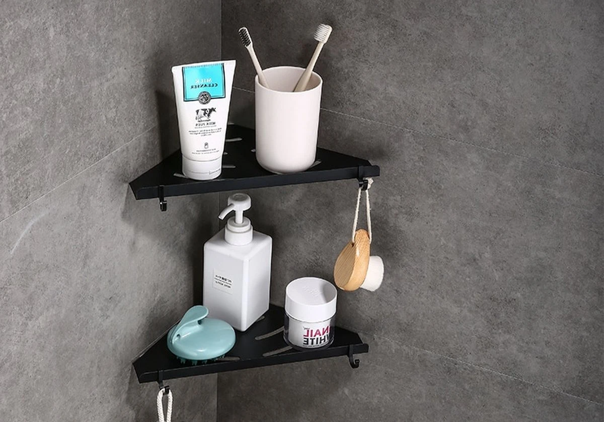 Met deze doucheplankjes houd je jouw douche gemakkelijk en stijlvol opgeruimd. Je plaatst ze eenvoudig in de hoek van je douchecabine of inloopdouche en je kunt ze direct gebruiken. Door het opstaande randje vallen je flessen niet gemakkelijk van de plankjes af en met de megeleverde haakjes (2 per plankje) kun je ook nog je washandjes, sponsjes of haarnetjes ophangen. De zwarte kleur maakt deze plankjes stijlvol en goed te combineren in iedere interieurstijl.
